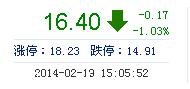 | 最 高: | 16.97 | 成交額: | 4.14億元 | 換手率: | 2.62% |
