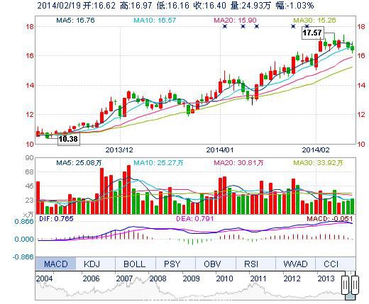 今開: 16.62 成交量: 24.93萬手 振幅: 4.89% 最高: 16.97 成交額: 4.14億元 換手率: 2.62% 最低: 16.16 總市值: 172.57億 市凈率: 4.90 昨收: 16.57 流通市值...