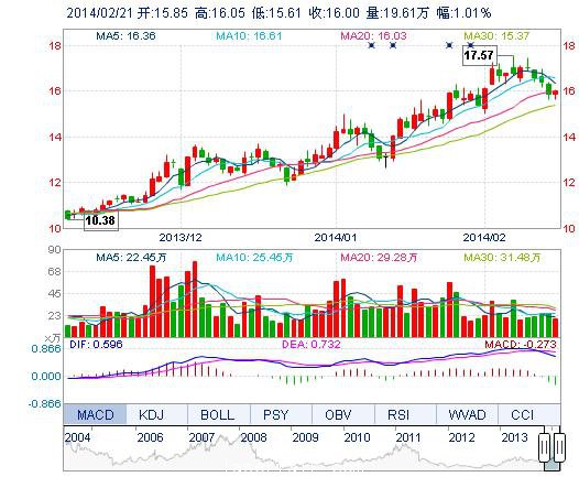今開: 15.85 成交量: 19.61萬手 振幅: 2.78% 最高: 16.05 成交額: 3.11億元 換手率: 2.06% 最低: 15.61 總市值: 168.36億 市凈率: 4.78 昨收: 15.84 流通市值...