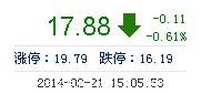 | 今 開: | 17.88 | 成交量: | 5.62萬手 | 振 幅: | 4.67% |
