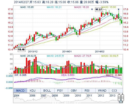 今開: 15.63 成交量: 28.90萬手 振幅: 8.19% 最高: 16.28 成交額: 4.53億元 換手率: 3.03% 最低: 15.00 總市值: 158.47億 市凈率: 4.50 昨收: 15.62 流通市值...