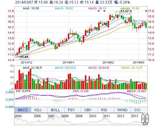 今開: 15.90 成交量: 23.33萬手 振幅: 7.01% 最高: 16.24 成交額: 3.62億元 換手率: 2.45% 最低: 15.12 總市值: 159.31億 市凈率: 4.52 昨收: 15.98 流通市值...