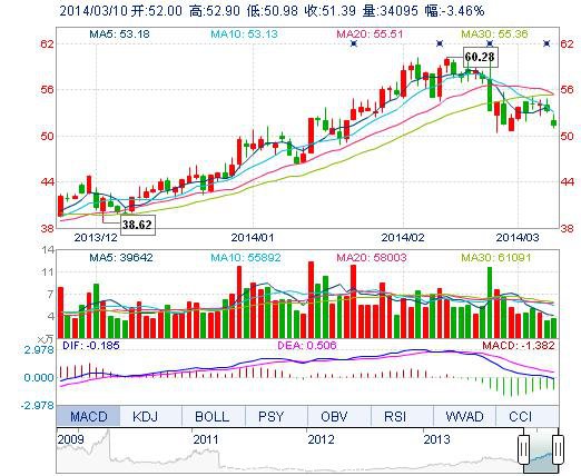 | 最 高: | 52.90 | 成交額: | 1.76億元 | 換手率: | 1.19% |
