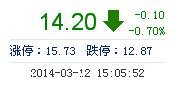 今開: 14.28 成交量: 13.53萬手 振幅: 4.06% 最高: 14.50 成交額: 1.92億元 換手率: 1.42% 最低: 13.92 總市值: 149.42億 市凈率: 4.24 昨收: 14.30 流通市值...