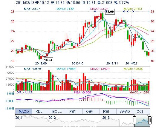 | 最 低: | 18.95 | 總市值: | 13.87億 | 市凈率: | 4.74 |