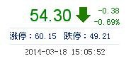 | 今 開: | 54.68 | 成交量: | 3.57萬手 | 振 幅: | 2.62% |