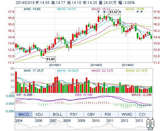 今開: 14.55 成交量: 24.01萬手 振幅: 4.56% 最高: 14.77 成交額: 3.45億元 換手率: 2.52% 最低: 14.10 總市值: 149.95億 市凈率: 4.26 昨收: 14.69 流通市值...