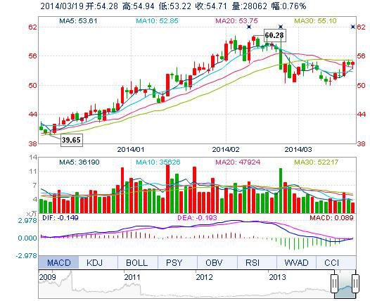 今開: 54.28 成交量: 2.81萬手 振幅: 3.17% 最高: 54.94 成交額: 1.52億元 換手率: 0.98% 最低: 53.22 總市值: 162.85億 市凈率: 10.72 昨收: 54.30 流通市值...