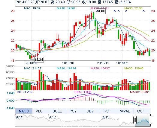 | 最 低: | 18.96 | 總市值: | 13.30億 | 市凈率: | 4.55 |
