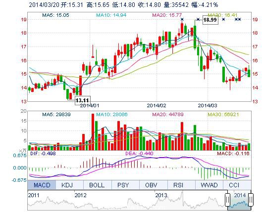 | 最 低: | 14.80 | 總市值: | 19.83億 | 市凈率: | 6.04 |