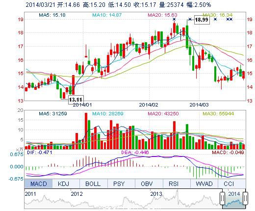 今開: 14.66 成交量: 2.54萬手 振幅: 4.73% 最高: 15.20 成交額: 3768.16萬元 換手率: 3.70% 最低: 14.50 總市值: 20.33億 市凈率: 6.19 昨收: 14.80 流通市...