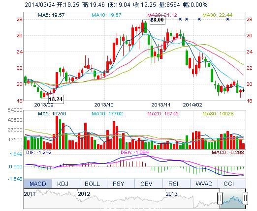 | 今 開: | 19.25 | 成交量: | 8564手 | 振 幅: | 2.18% |