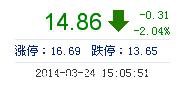 | 今 開: | 15.17 | 成交量: | 2.05萬手 | 振 幅: | 2.97% |