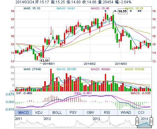 | 最 低: | 14.80 | 總市值: | 19.91億 | 市凈率: | 6.06 |