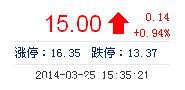 | 最 高: | 15.08 | 成交額: | 2576.16萬元 | 換手率: | 2.55% |