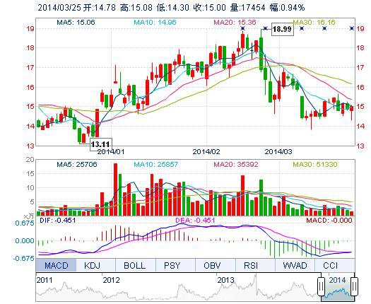 | 今 開: | 14.78 | 成交量: | 1.75萬手 | 振 幅: | 5.25% |