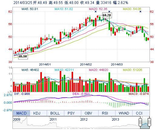 今開: 48.49 成交量: 3.34萬手 振幅: 3.22% 最高: 49.55 成交額: 1.64億元 換手率: 1.16% 最低: 48.00 總市值: 146.87億 市凈率: 9.67 昨收: 48.08 流通市值...