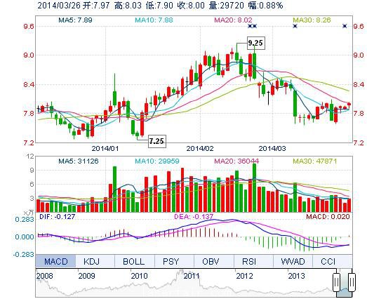 | 今 開: | 7.97 | 成交量: | 2.97萬手 | 振 幅: | 1.64% |