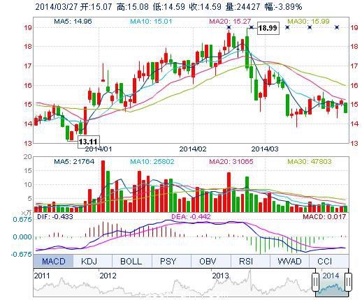 | 今 開: | 15.07 | 成交量: | 2.44萬手 | 振 幅: | 3.23% |