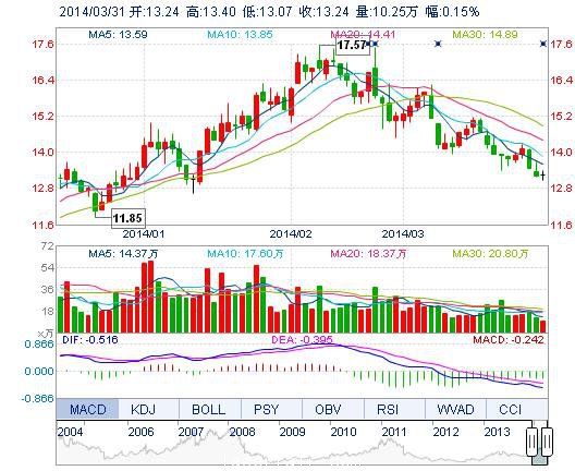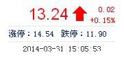 | 今 開: | 13.24 | 成交量: | 10.25萬手 | 振 幅: | 2.50% |