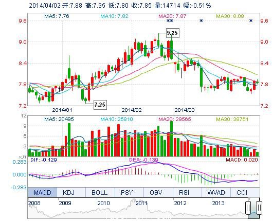| 今 開: | 7.88 | 成交量: | 1.47萬手 | 振 幅: | 1.90% |