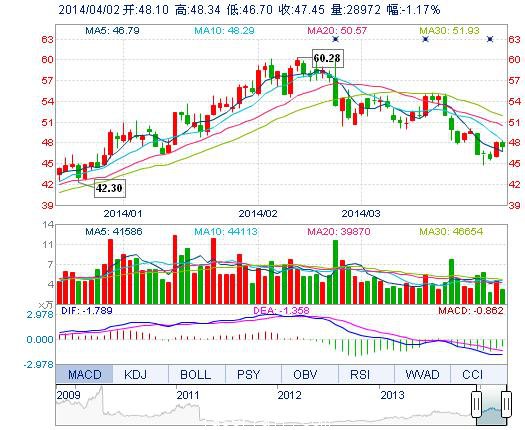 | 今 開: | 48.10 | 成交量: | 2.90萬手 | 振 幅: | 3.42% |