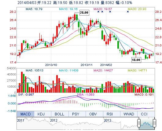 | 今 開: | 19.22 | 成交量: | 8362手 | 振 幅: | 3.54% |