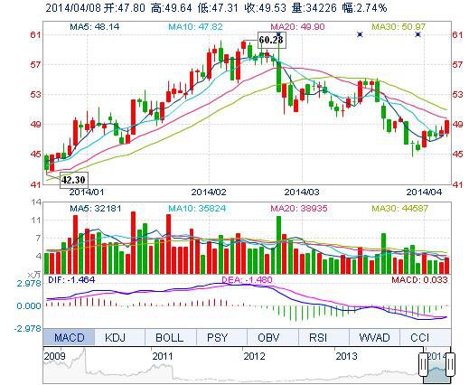 | 今 開(kāi): | 47.80 | 成交量: | 3.42萬(wàn)手 | 振 幅: | 4.83% |