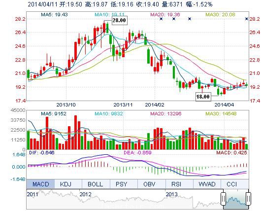 | 今 開: | 19.50 | 成交量: | 6371手 | 振 幅: | 3.60% |