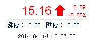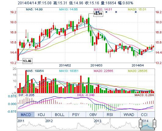 | 今 開: | 15.08 | 成交量: | 1.67萬手 | 振 幅: | 2.32% |