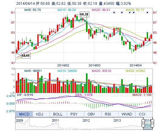 | 今 開: | 50.68 | 成交量: | 4.35萬手 | 振 幅: | 4.42% |