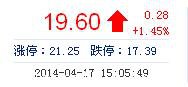 今開: 19.35 成交量: 4848手 振幅: 2.17% 最高: 19.67 成交額: 947.33萬元 換手率: 2.24% 最低: 19.25 總市值: 13.72億 市凈率: 4.69 昨收: 19.32 流通市值:...