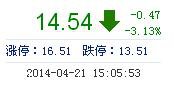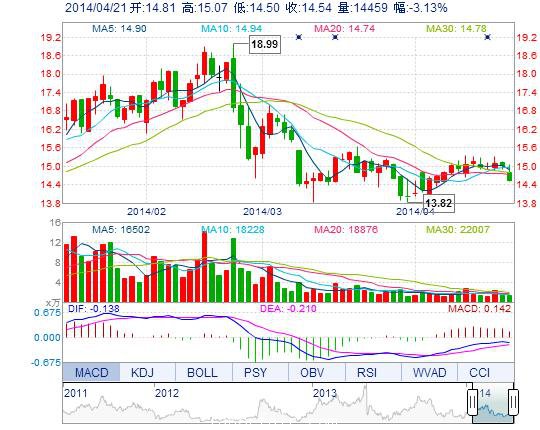 | 今 開: | 14.81 | 成交量: | 1.45萬手 | 振 幅: | 3.80% |