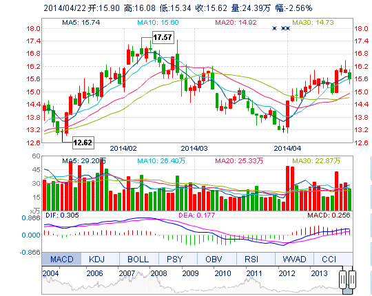 | 最 低: | 15.34 | 總市值: | 164.36億 | 市凈率: | 4.59 |