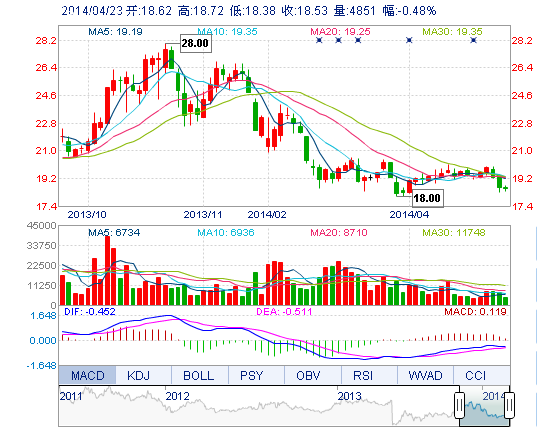 | 最 低: | 18.38 | 總市值: | 12.97億 | 市凈率: | 4.44 |