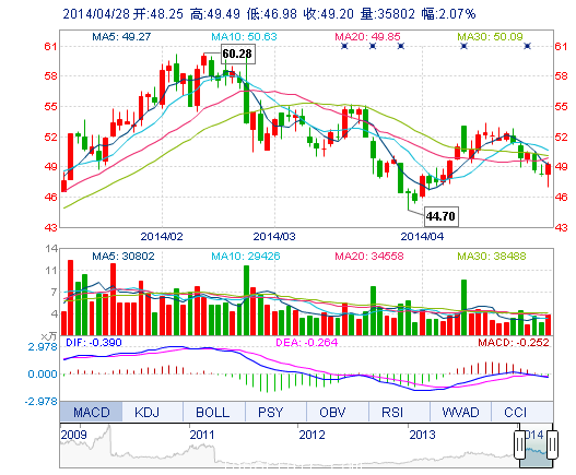 | 今 開: | 48.25 | 成交量: | 3.58萬手 | 振 幅: | 5.21% |