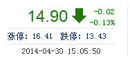 | 最 高: | 15.23 | 成交額: | 1.94億元 | 換手率: | 1.35% |
