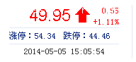 | 最 高: | 50.22 | 成交額: | 1.12億元 | 換手率: | 0.78% |