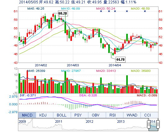 | 今 開: | 49.62 | 成交量: | 2.26萬手 | 振 幅: | 2.04% |