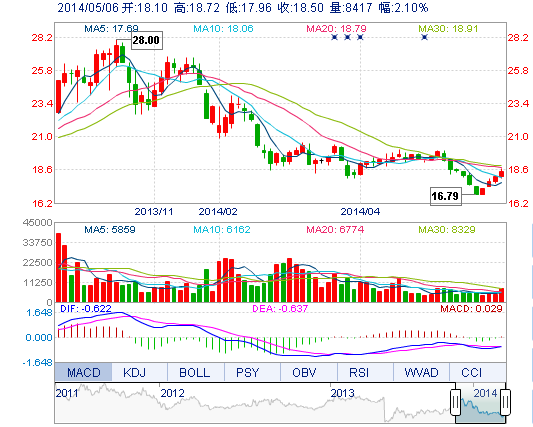 | 今 開: | 18.10 | 成交量: | 8417手 | 振 幅: | 4.19% |