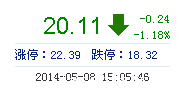 今開: 20.77 成交量: 3.95萬手 振幅: 4.32% 最高: 20.88 成交額: 8077.73萬元 換手率: 18.04% 最低: 20.00 總市值: 14.08億 市凈率: 4.82 昨收: 20.35 流通市...