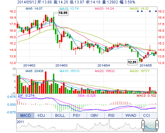 | 最 高: | 14.20 | 成交額: | 1812.11萬元 | 換手率: | 1.88% |