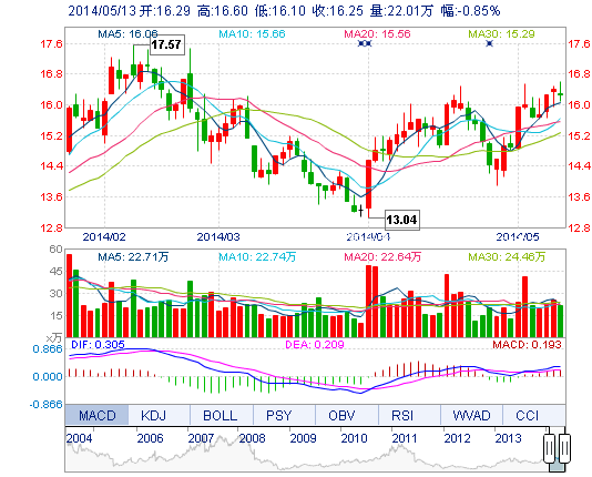 | 最 高: | 16.60 | 成交額: | 3.60億元 | 換手率: | 2.30% |