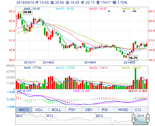 最  高: 20.80 成交額: 3941.27萬元 換手率: 8.89%