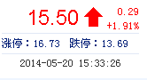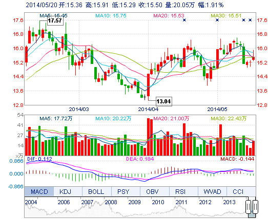 | 最 高: | 15.91 | 成交額: | 3.13億元 | 換手率: | 2.10% |
