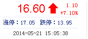 | 最 高: | 16.60 | 成交額: | 6.61億元 | 換手率: | 4.30% |