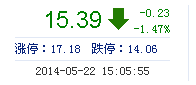 | 今 開: | 15.48 | 成交量: | 5.78萬手 | 振 幅: | 3.65% |