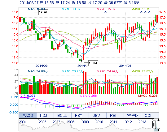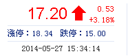 | 最 高: | 17.24 | 成交額: | 6.25億元 | 換手率: | 3.83% |