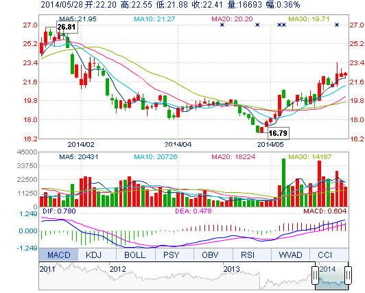 | 最 低: | 21.88 | 總市值: | 15.69億 | 市凈率: | 5.37 |