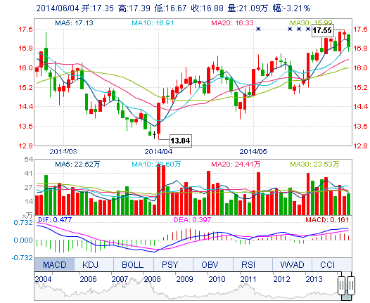 | 最 高: | 17.39 | 成交額: | 3.57億元 | 換手率: | 2.21% |